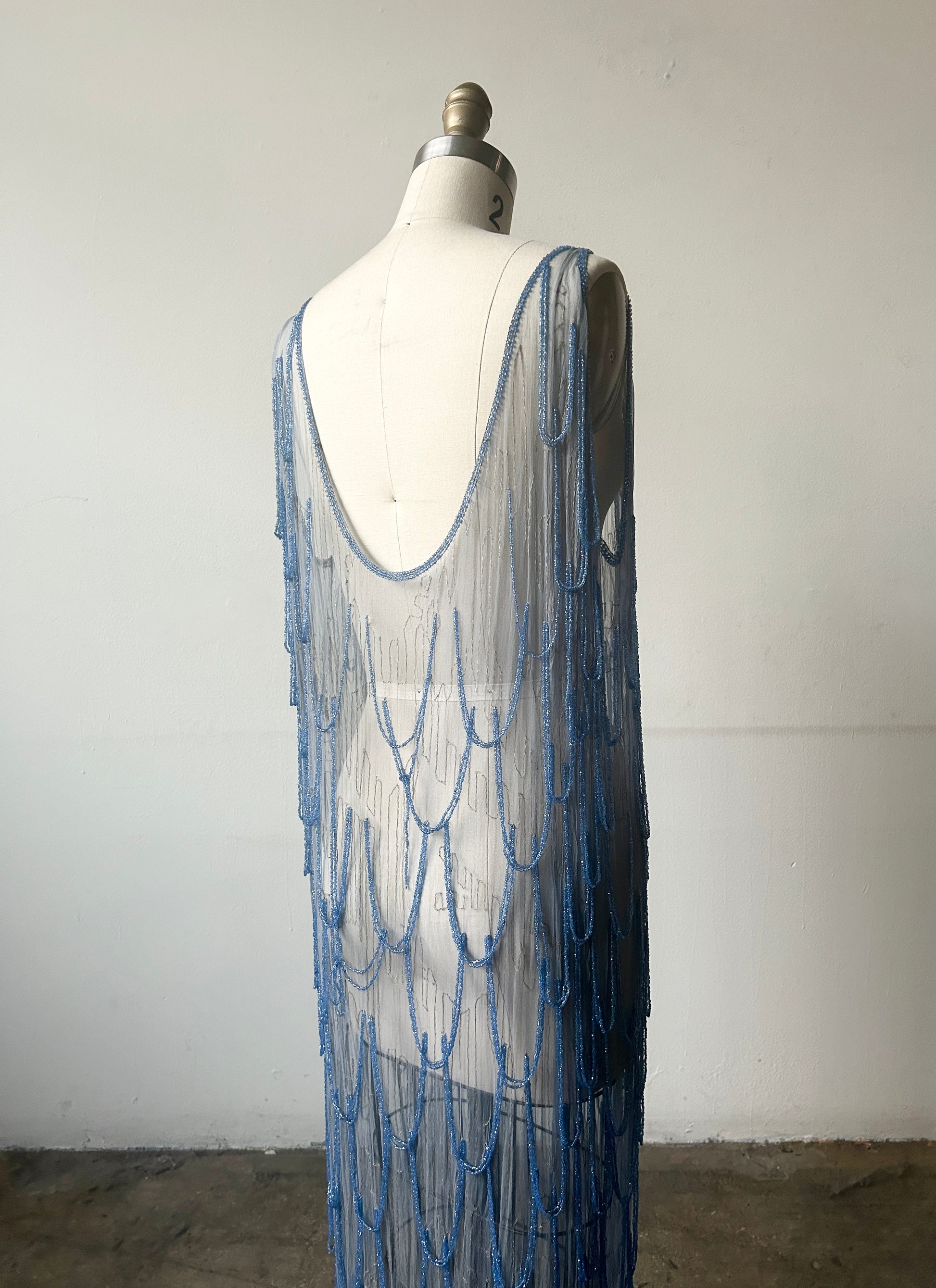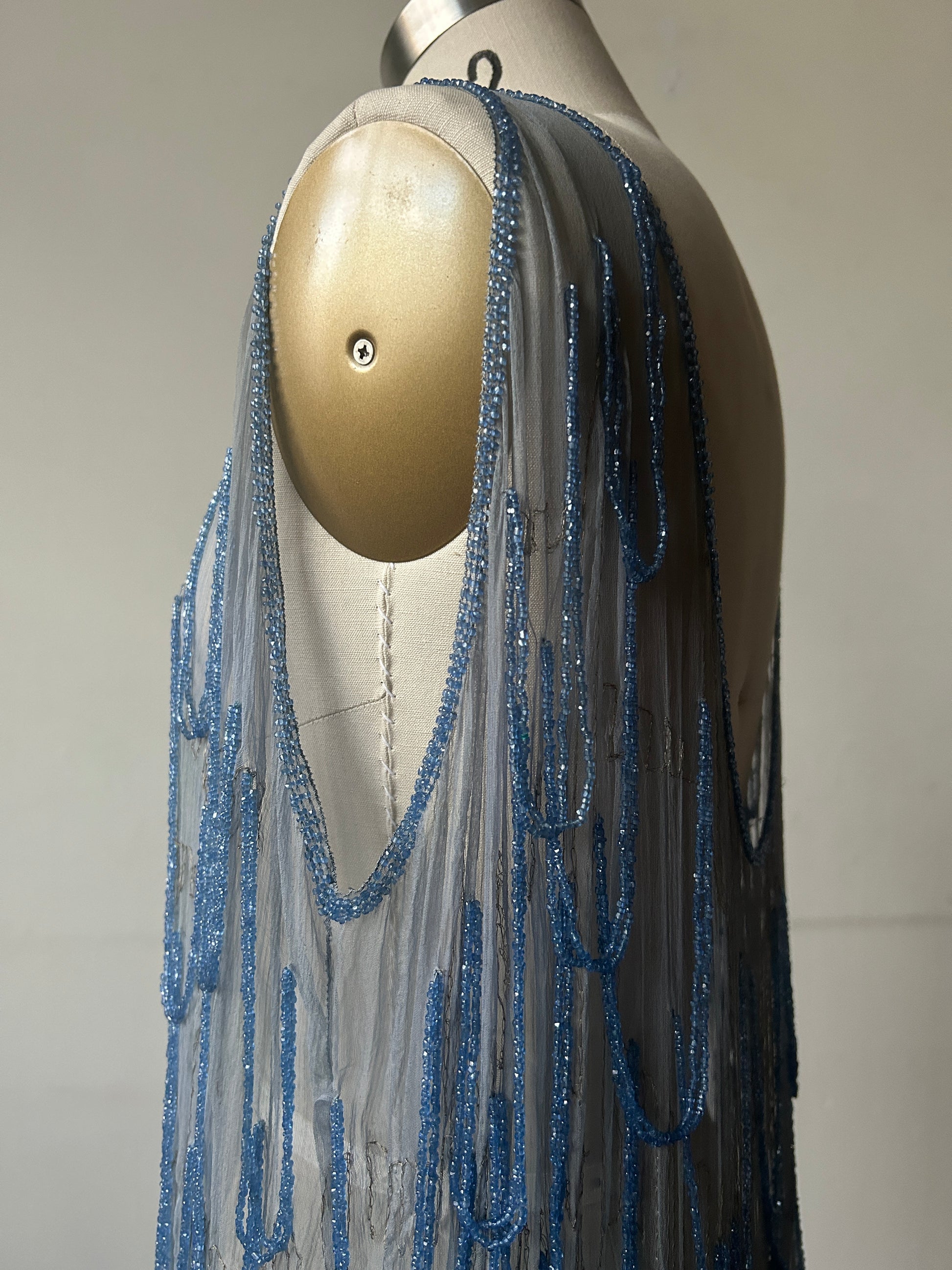 1920s periwinkle glass bead dress