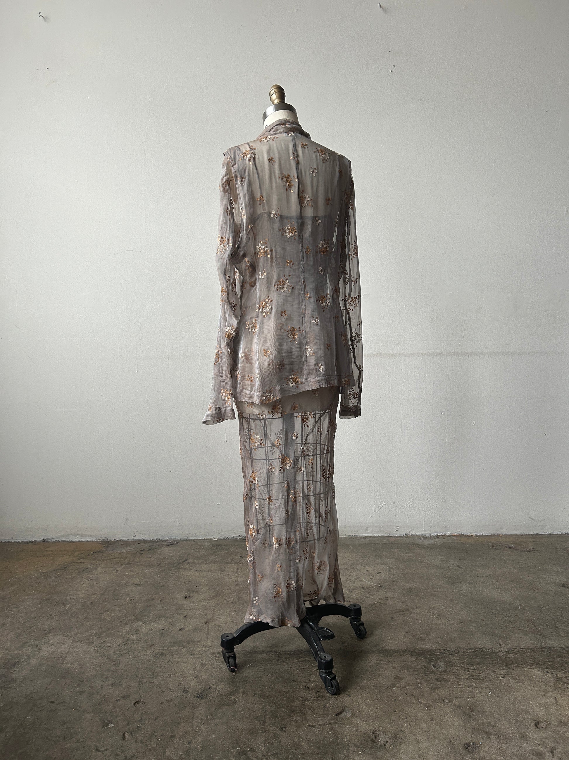 dries van noten ss 1997 silk floral embellished bias cut dress and jacket