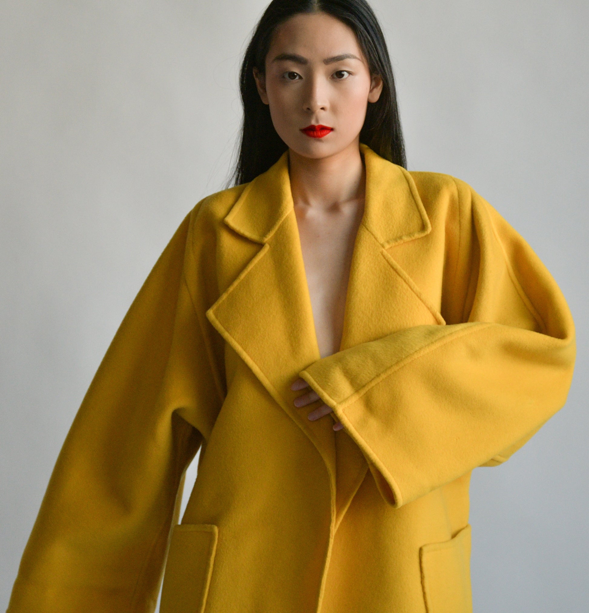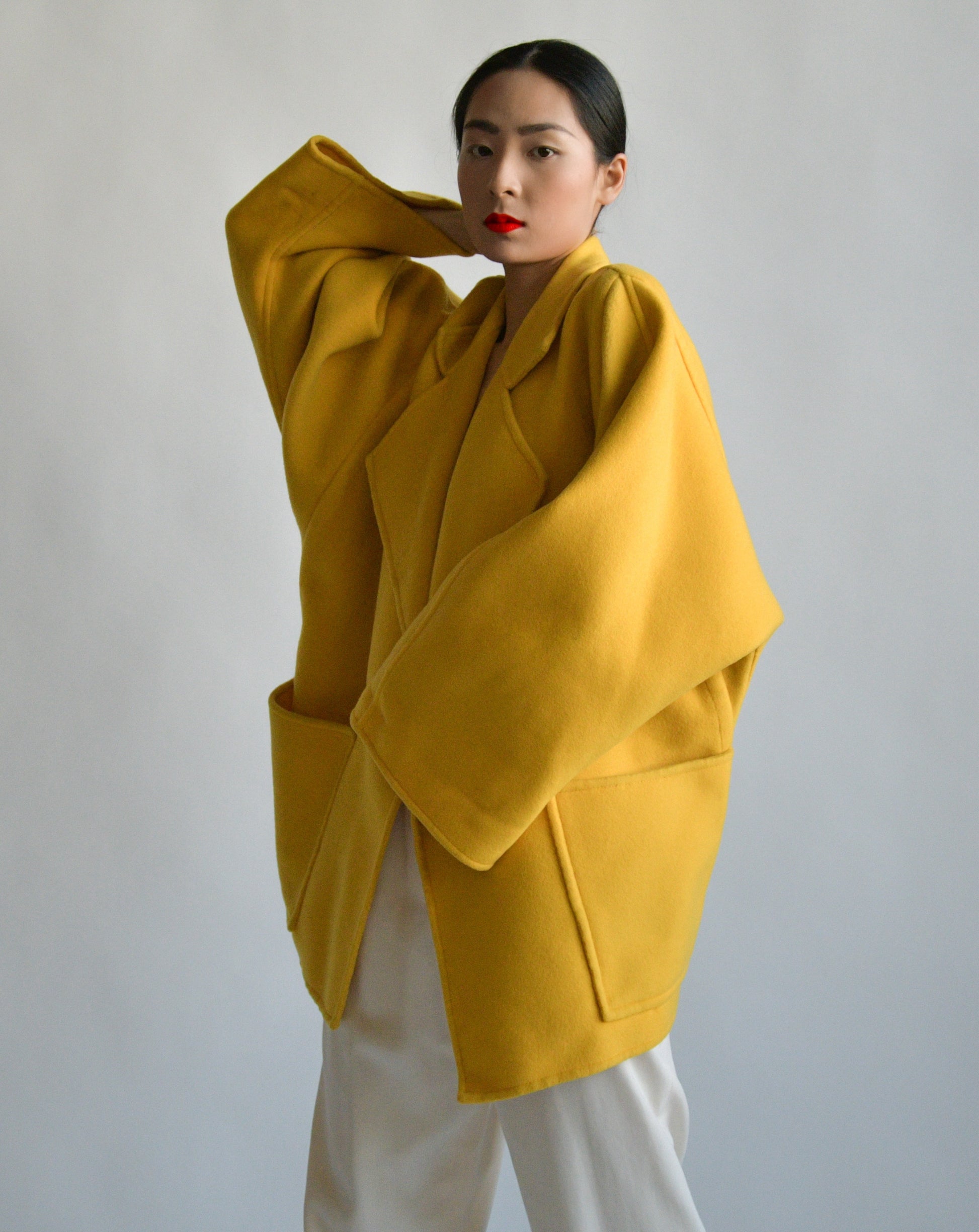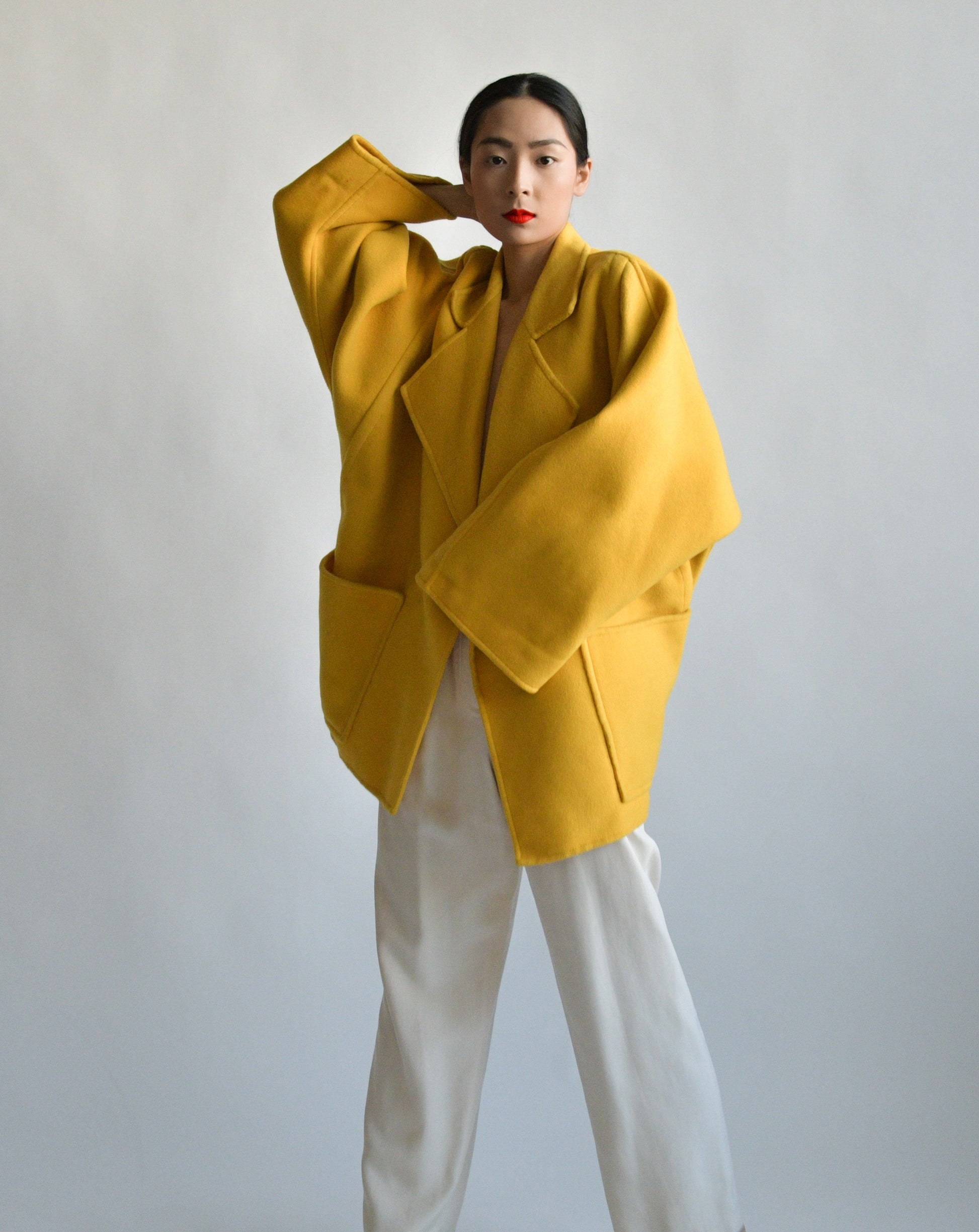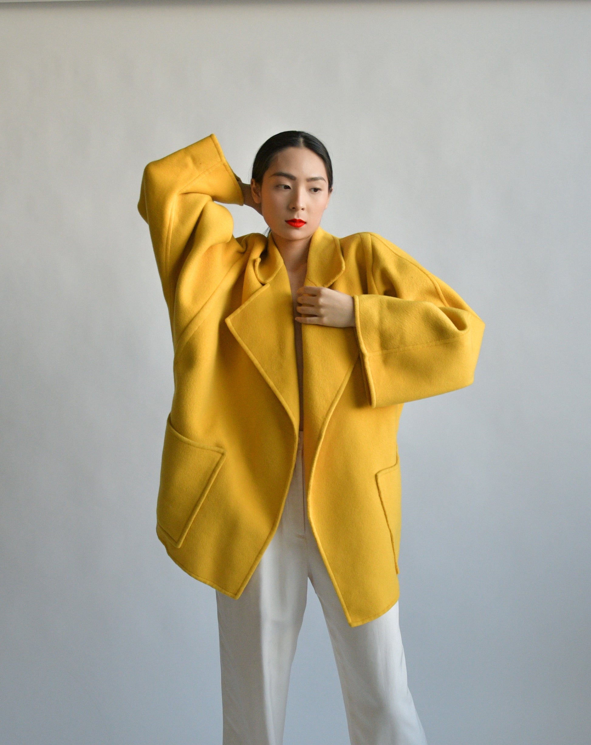 gianfranco ferre wool cashmere yellow coat. boxy fit. no closures. unlined.