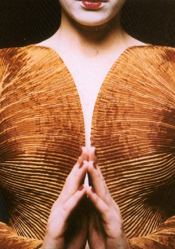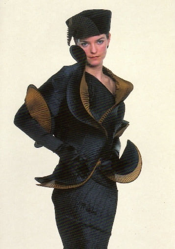 a lot of designers work with plisse fabric-- jo buckler is a london-based designer (circa 1990s/early 2000s) whose pieces are a bit harder to come by and more architectural (true art-to-wear pieces) than some more ubiquitous names. her pieces tend to be three-dimensional and almost wearable sculptures.